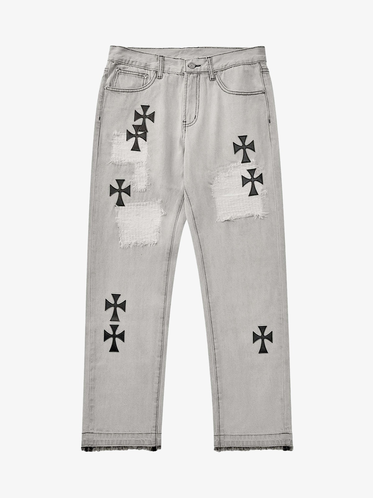 Street Distressed Washed Diamond Patch Jeans