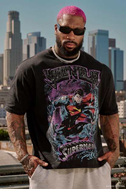DESIGN: These Superman Graphic Tees are made from soft, heavyweight 290 GSM cotton and come in a black washed finish. Each tee features a bold and unique Superman graphic, offering multiple designs that stand out with attitude and heroic style.