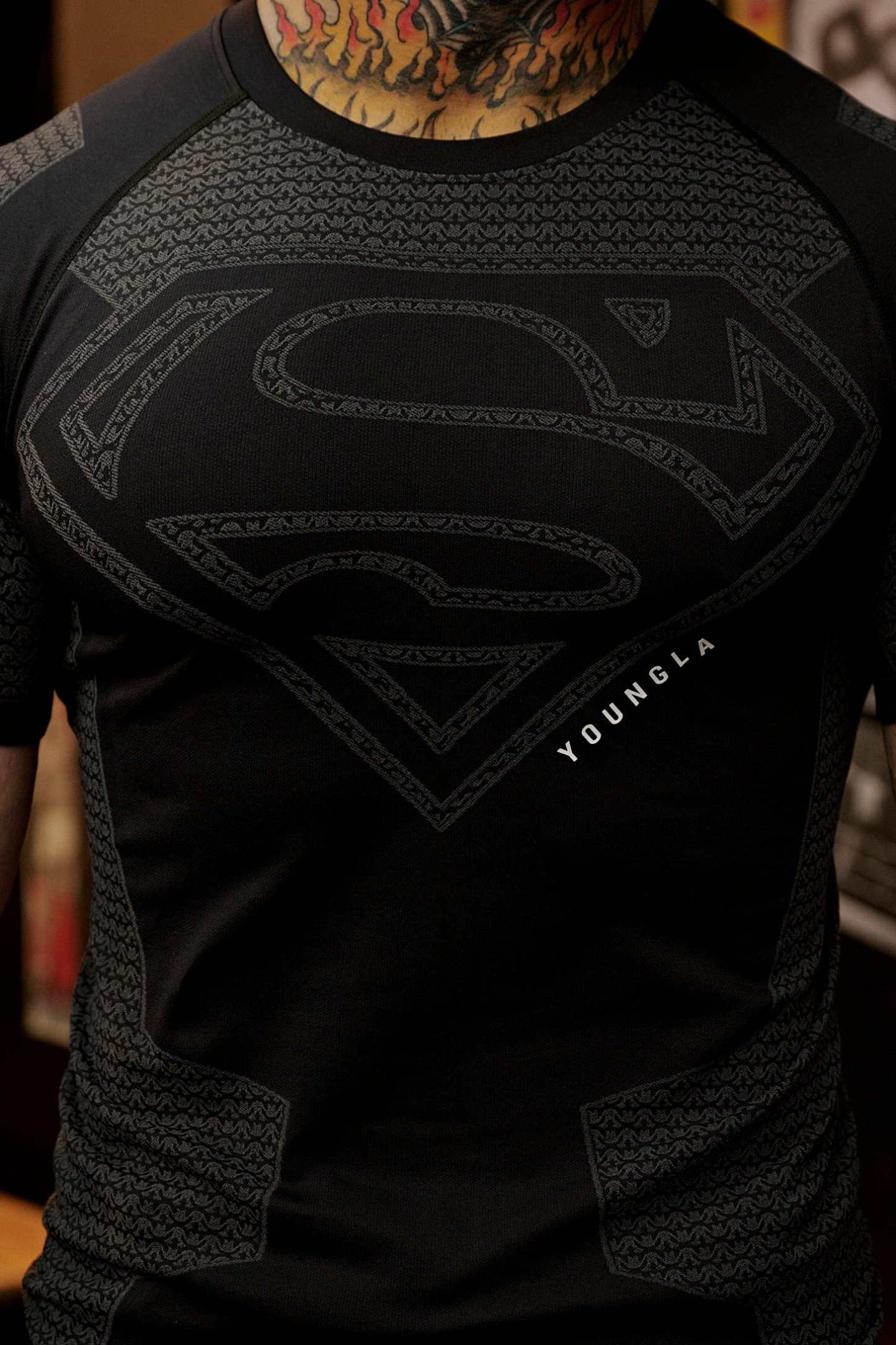 DESIGN: The Superman x YoungLA Compression Tee is one of the standout pieces in the collection. Designed for a sculpted, athletic fit, this tee is built to highlight your physique. Made with premium jacquard patterns and detailed paneling, it delivers both performance and superhero-level style.