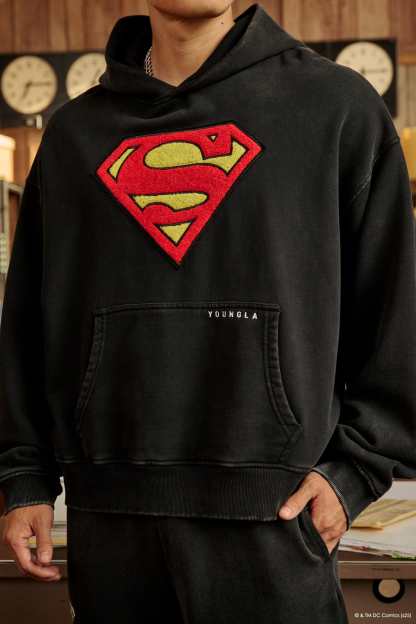 DESIGN: The Superman Legacy Hoodie blends comfort and statement style with its 460 GSM soft cotton fabric and relaxed fit. Featuring a chenille patch Superman logo on the chest and a clean acid-washed finish, this hoodie
