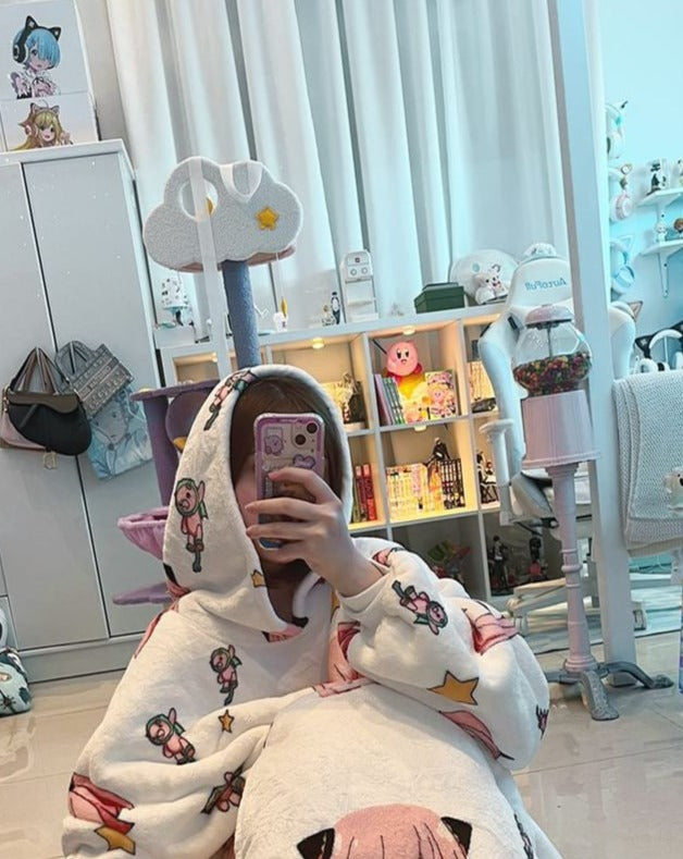 Introducing our anime blanket hoodie, the ultimate combination of comfort and kawaii awesomeness. Made with soft, fluffy material and features your favorite anime characters on the front, so you can rep your love for anime while staying warm and cozy. Don't settle for a boring old blanket or a generic hoodie, step up your anime-merch game with our anime blanket hoodie.