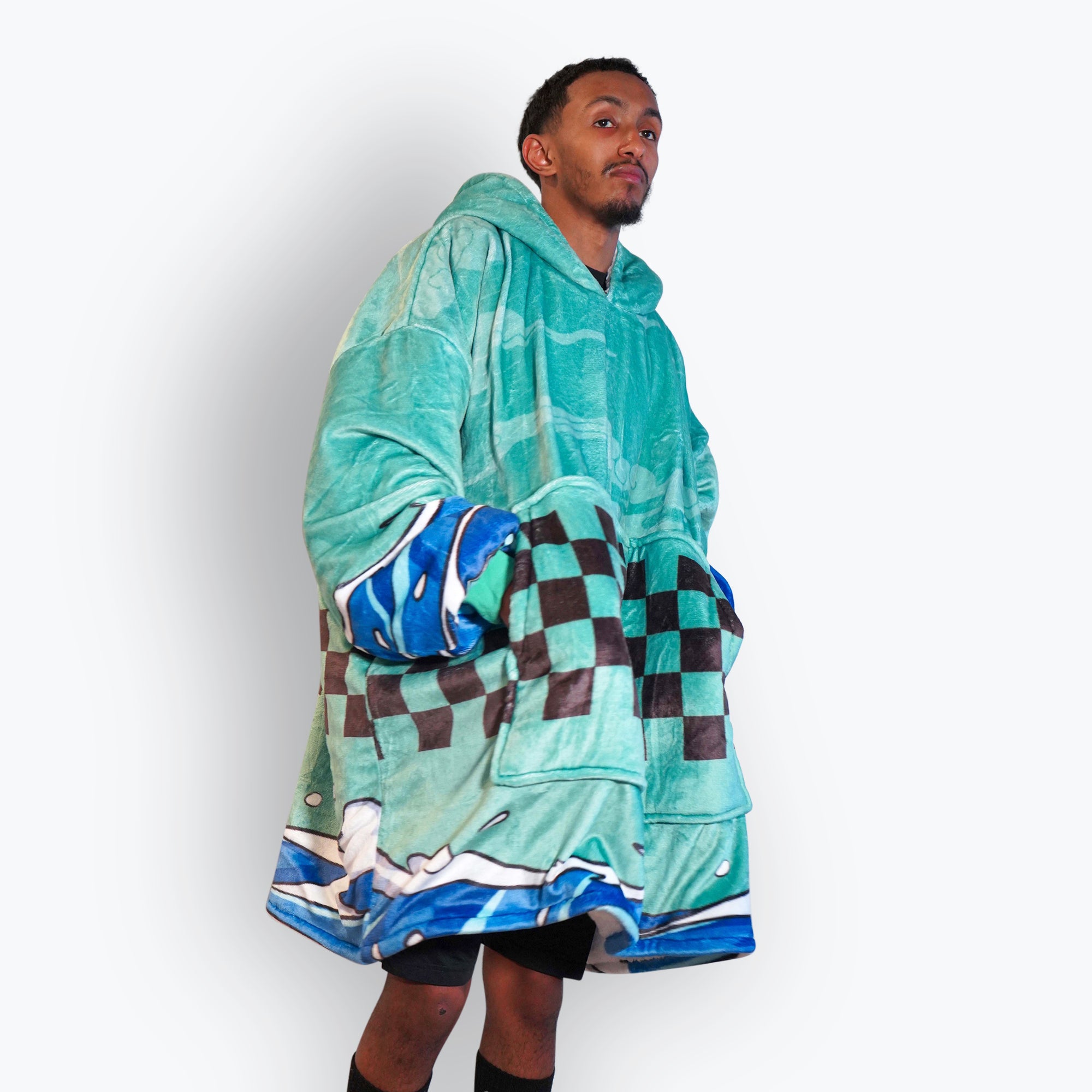 Introducing our anime blanket hoodie, the ultimate combination of comfort and kawaii awesomeness. Made with soft, fluffy material and features your favorite anime characters on the front, so you can rep your love for anime while staying warm and cozy. Don't settle for a boring old blanket or a generic hoodie, step up your anime-merch game with our anime blanket hoodie.