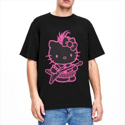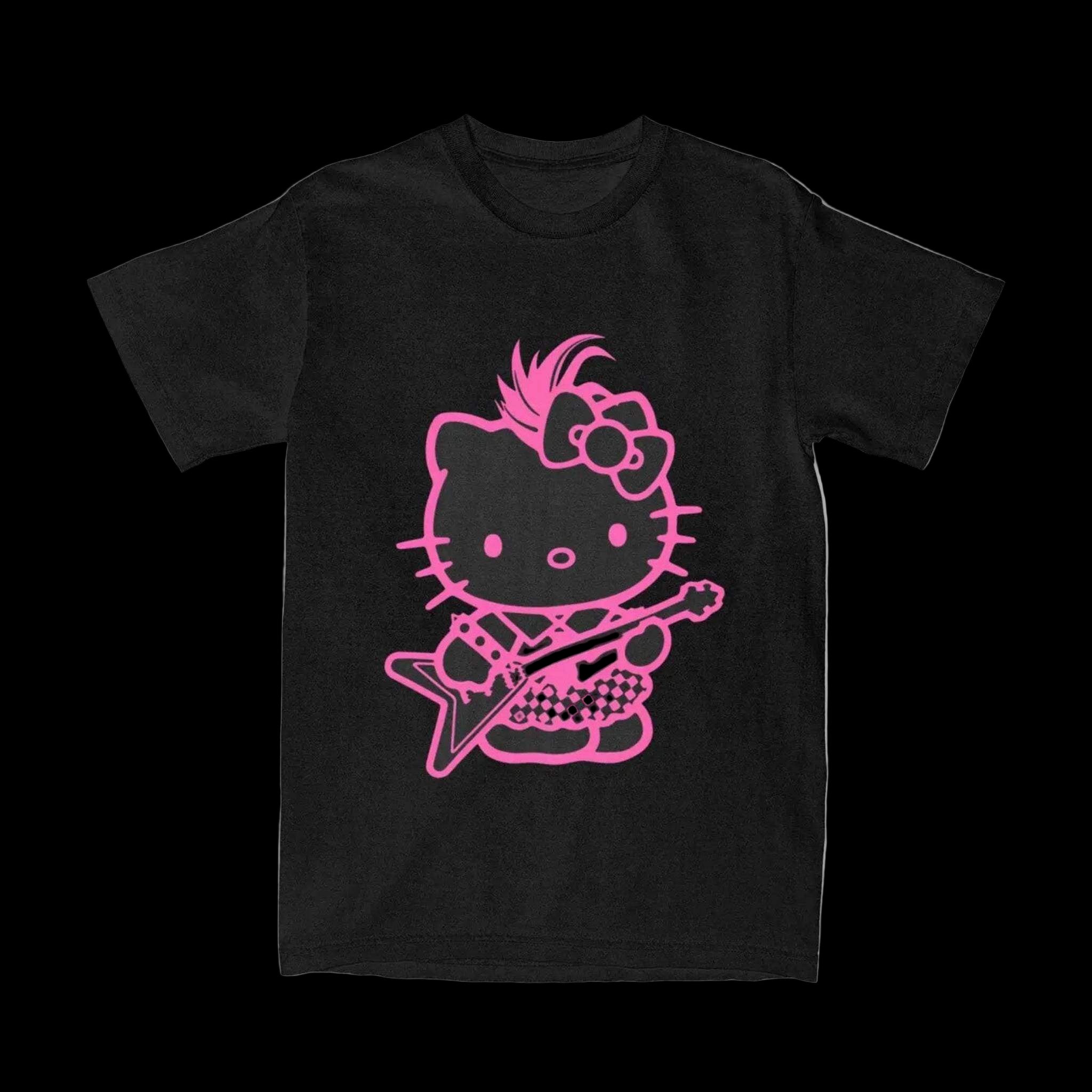 Featuring Hello Kitty in a punk-rock inspired outfit, complete with electric guitar — this tee combines kawaii charm with edgy attitude. A must-have for fans who want to stand out while staying cute.