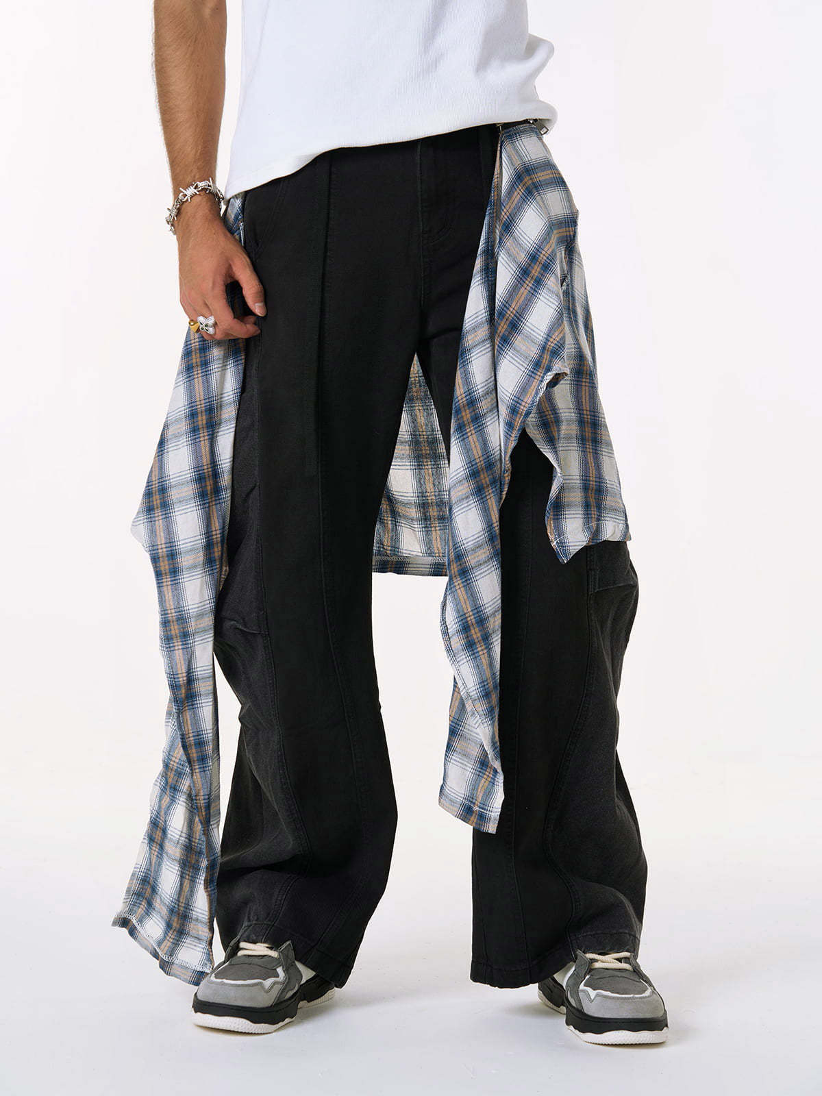 ? The plaid shirt front adds a trendy and distinctive touch to your outfit