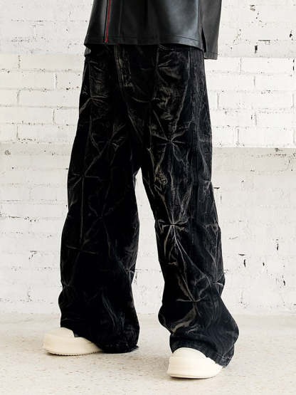 ? Detail Features: Pleated Design, Wide Leg, Elastic Waistband