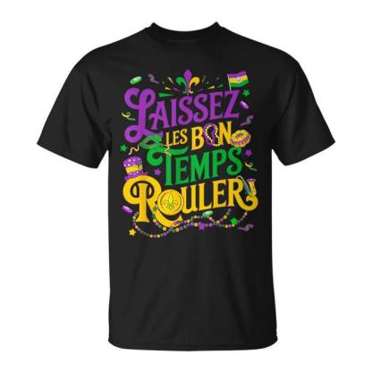 Laissez Les Bon Temps Rouler Mardi Gras Beads Fleur De Lis T-Shirt