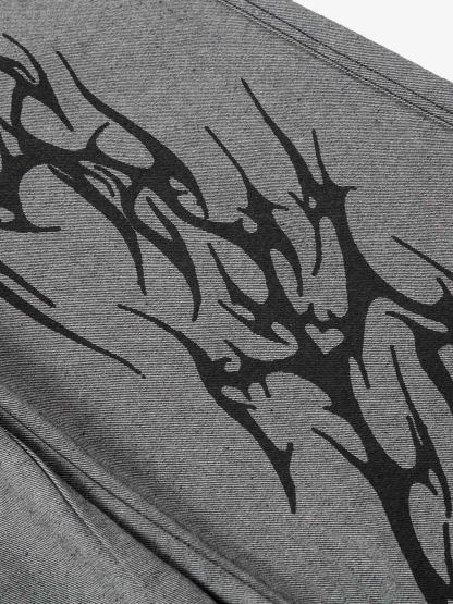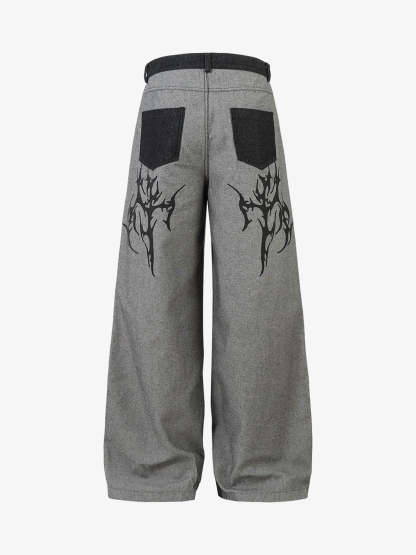 ? Design Elements: Unique tribal flame patterns on the legs, wide-leg silhouette, high-rise waistband