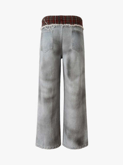 ? Unique plaid waistband adds a stylish contrast to the classic denim look