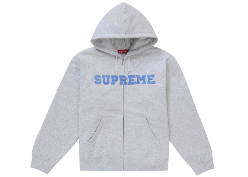 Supreme Collegiate Applique Zip Up Hooded Sweatshirt Ash Grey