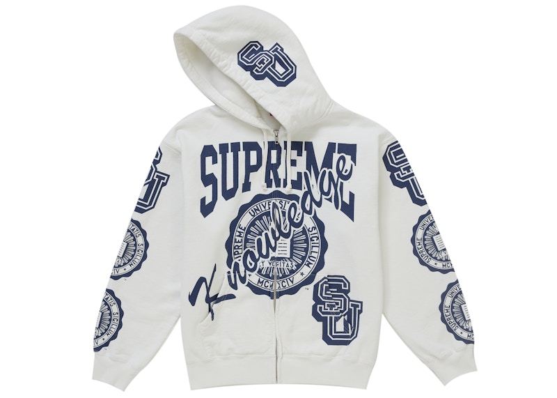 Supreme Knowledge Reigns Zip Up Hooded Sweatshirt White
