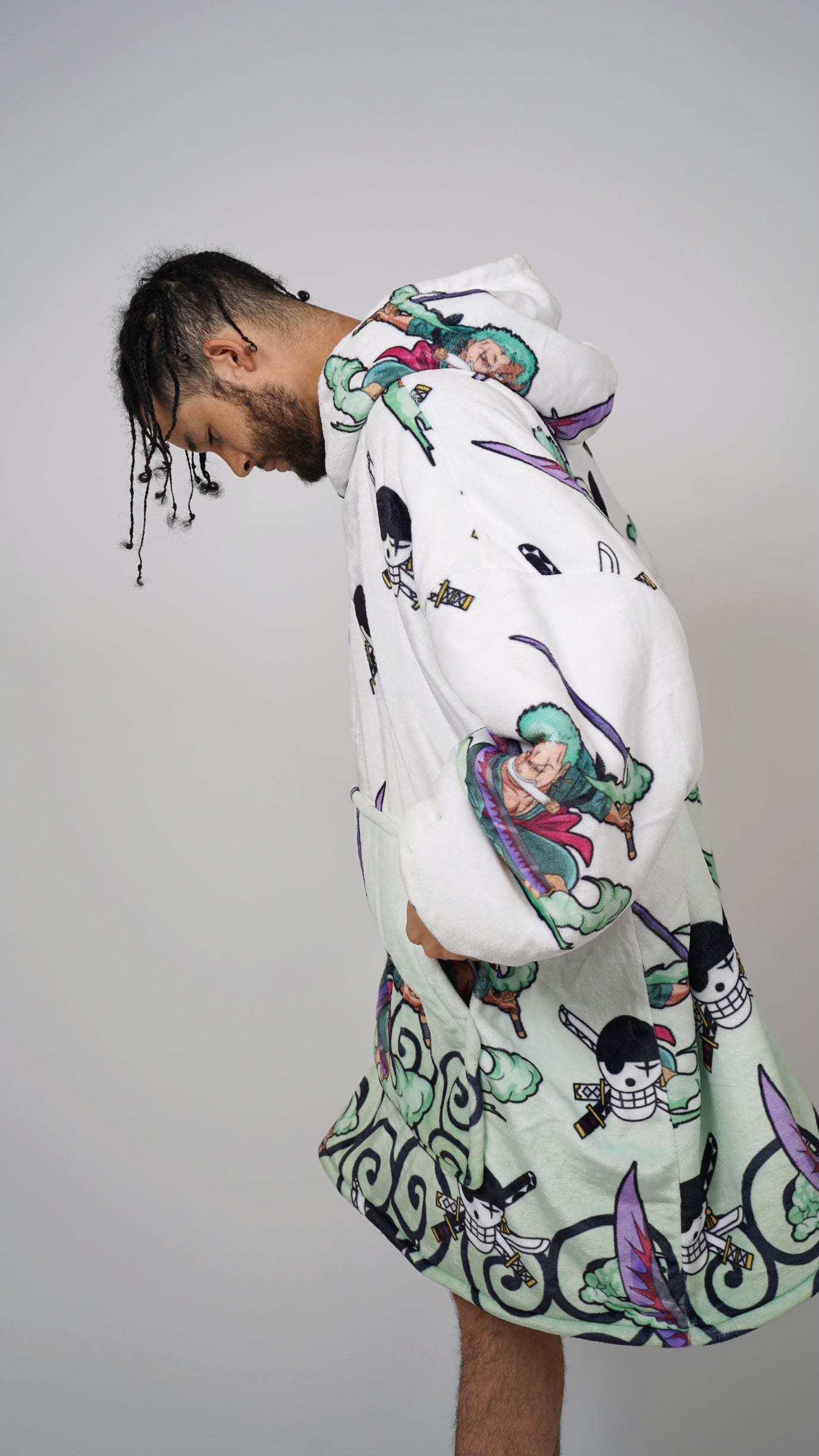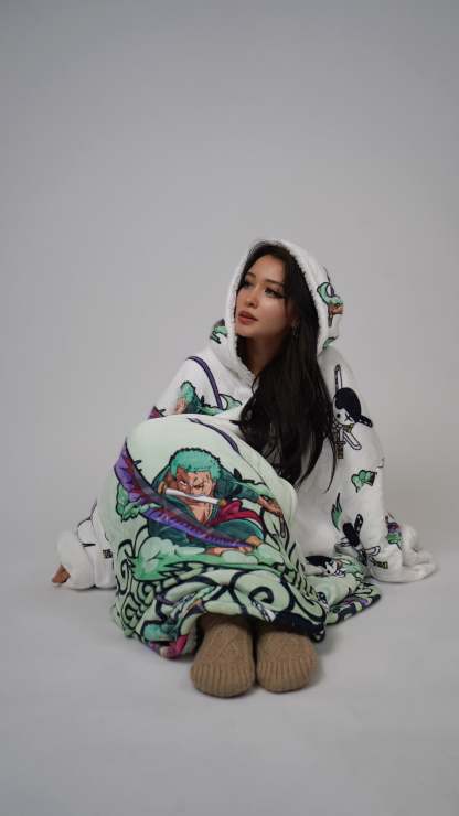 Introducing our anime blanket hoodie, the ultimate combination of comfort and kawaii awesomeness. Made with soft, fluffy material and features your favorite anime characters on the front, so you can rep your love for anime while staying warm and cozy. Don't settle for a boring old blanket or a generic hoodie, step up your anime-merch game with our anime blanket hoodie.